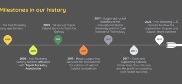 In 2013, the Irish Rocketry Society began collaborating more with university student groups, supporting clubs and societies in rocketry activities, from small model launches to high-power competition rockets.